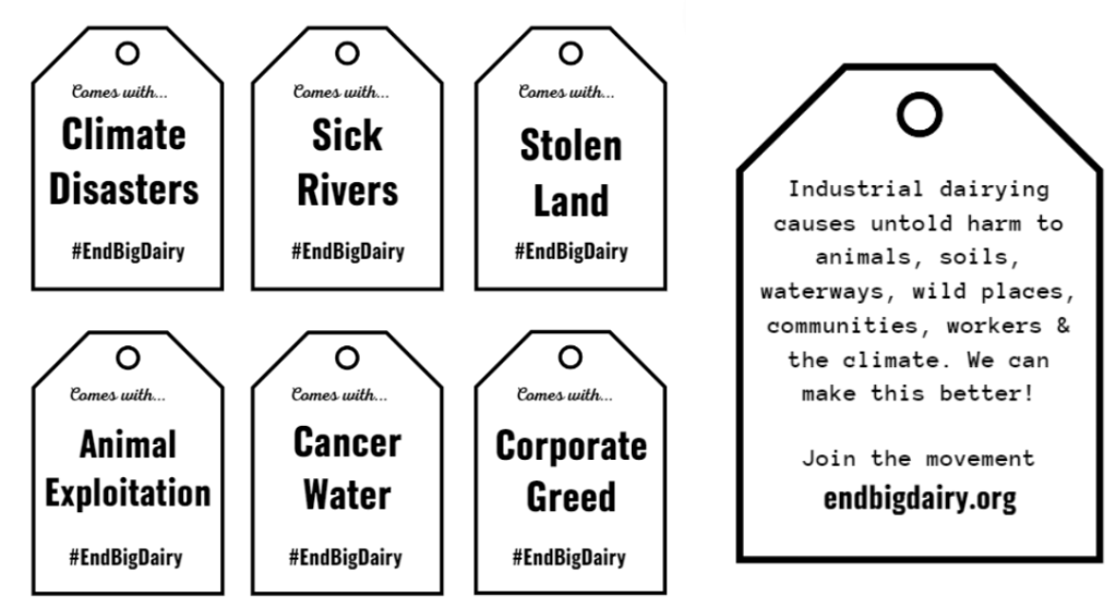Dairy Awards Protests – Banners and promo material from our first End Big Dairy collaboration, protesting the national dairy industry awards. Contact us if you want to collaborate on similar protests or get editable versions of these files!